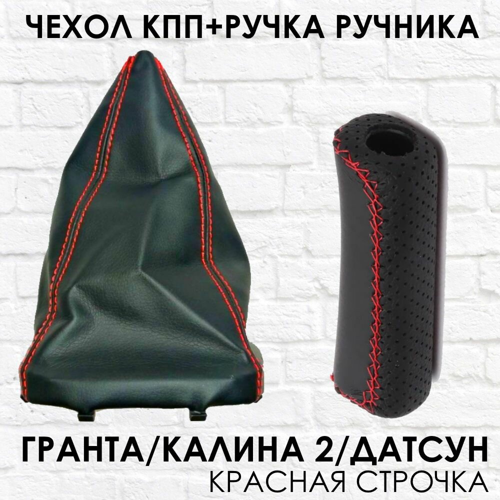 Купить Чехол КПП и Ручка ручника Гранта, Калина 2, Датсун красная строчка
