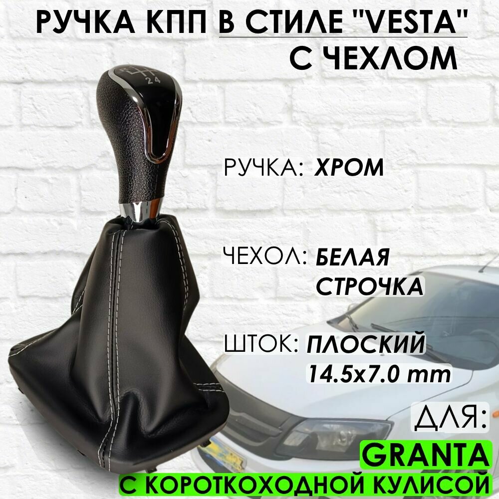 Купить Ручка КПП с чехлом для Granta С короткоходной кулисой "Веста стиль" (Хром/белая строчка)
