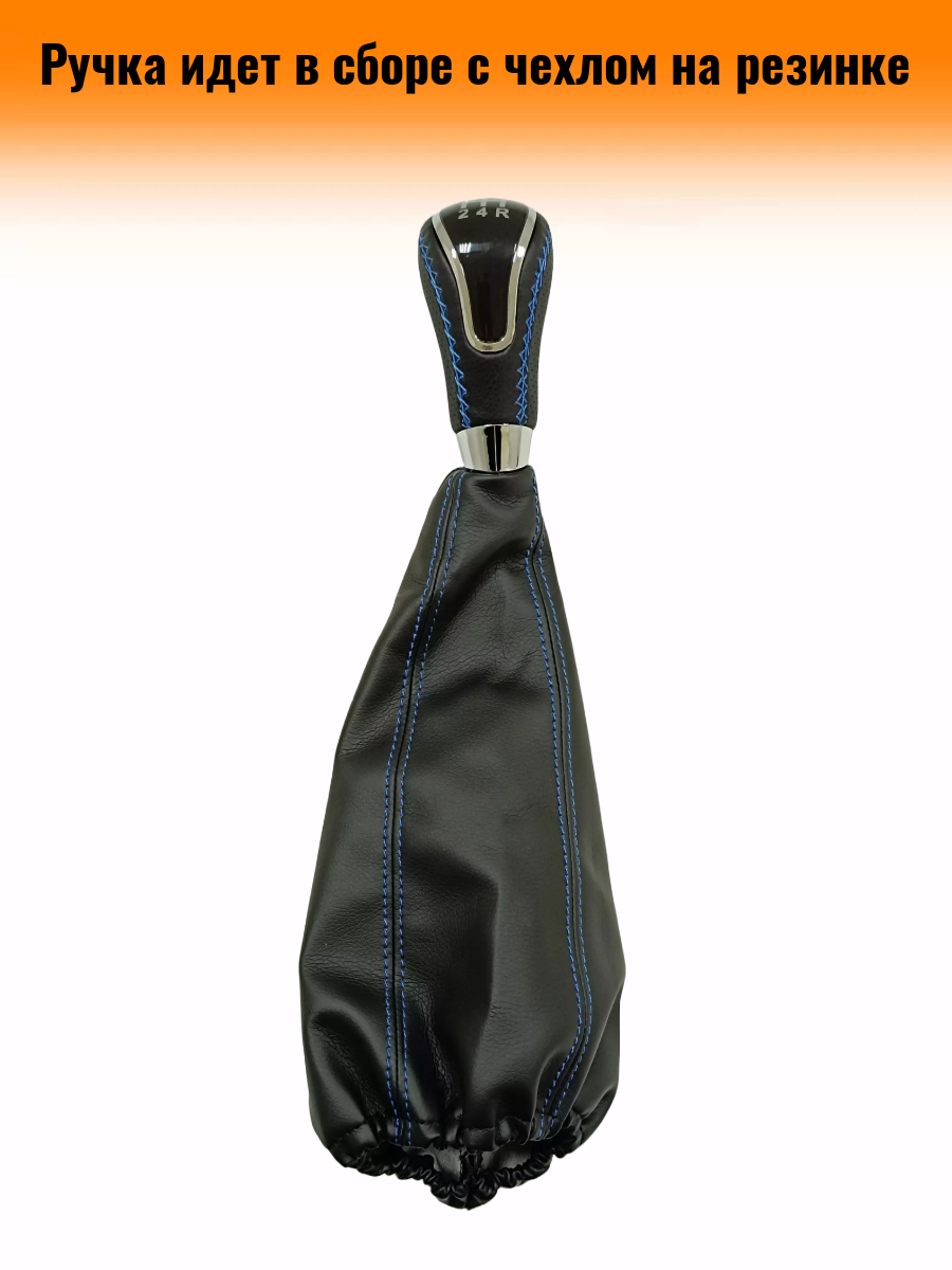 Ручка КПП с чехлом пыльником в стиле Весты на классику: ВАЗ-2101-2107-черный с синей строчкой "лак"