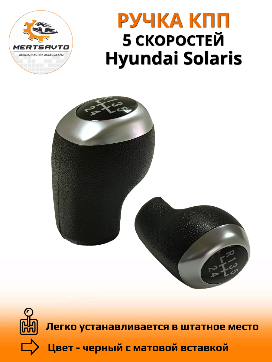 Ручка КПП на Hyundai Solaris (Хендай Солярис), 5 передач - серебристая вставка интересное: