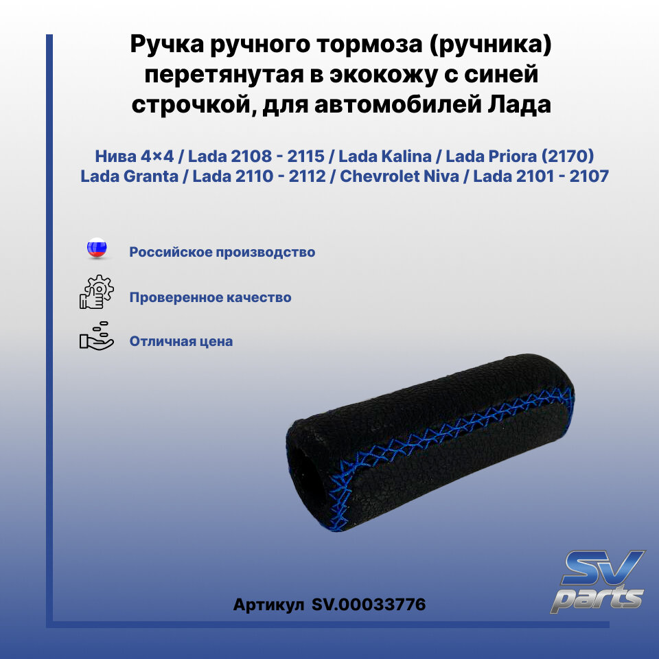 Купить Ручка ручного тормоза (ручника) перетянутая в экокожу с синей строчкой, для автомобилей Лада