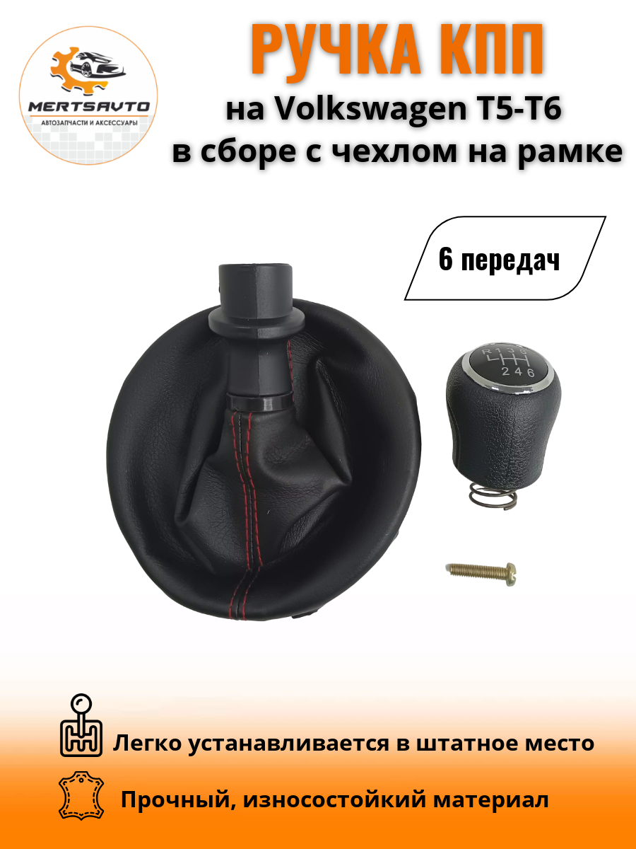 СохранитьРучка КПП с чехлом на Volkswagen Transporter T5/T6 (Фольксваген) ручка коробки переключения 6 передач (черный с красной строчкой ) интересное: