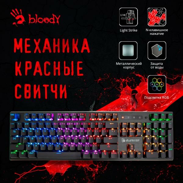 Клавиатура A4Tech Bloody B820R Blue S, русские и английские буквы, черный (b820r black (blue switch))