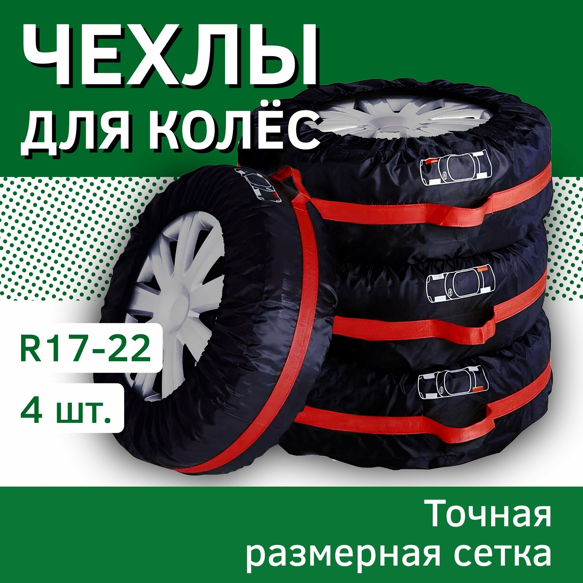 Купить Чехлы для колес автомобиля, с ручкой, карманом и рисунком, пакеты для хранения и переноски, черные с красной лентой - R 17, 18, 19, 20, 21, 22 - 4 шт.