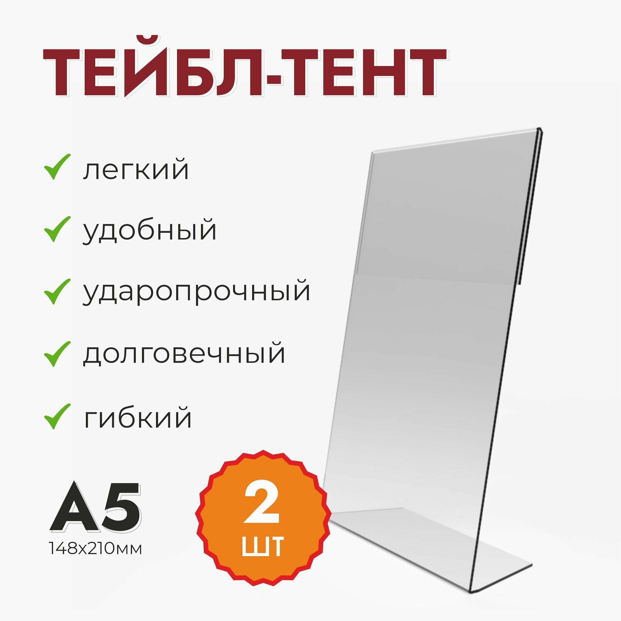 Купить Комплект (2шт.), менюхолдер А5 прозрачный (тейбл-тент)