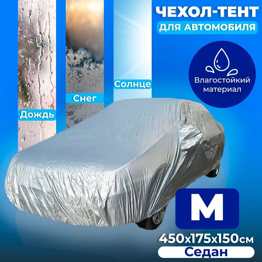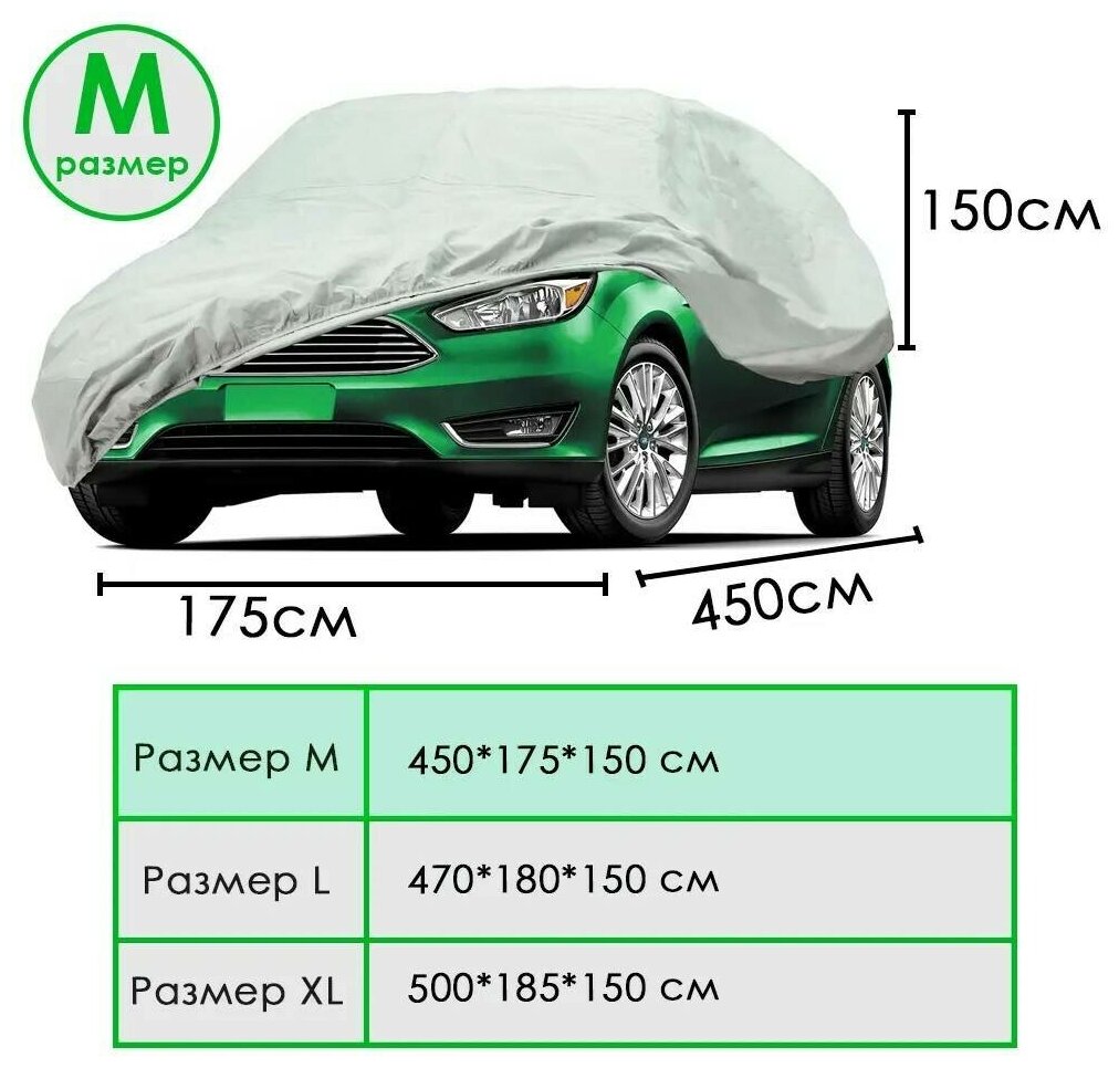 Чехол для автомобиля Takara PEVA защитный от снега, солнца, дождя, универсальный, водонепроницаемый с резинкой, 450*175*150 см (размер М) интересное:
