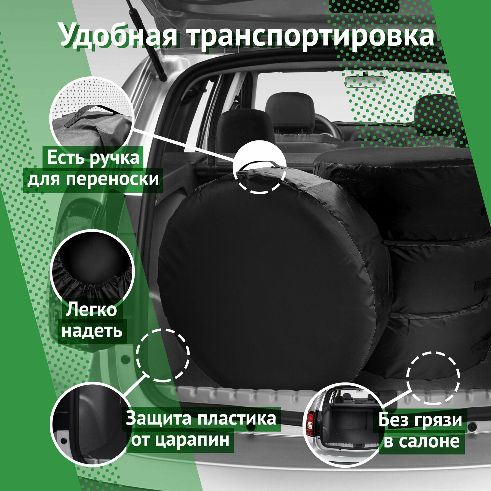 Чехлы для колес автомобиля, с ручкой, пакеты для хранения и переноски, черные - R 13, 14, 15, 16, 17, 18, 19 - 4 шт.