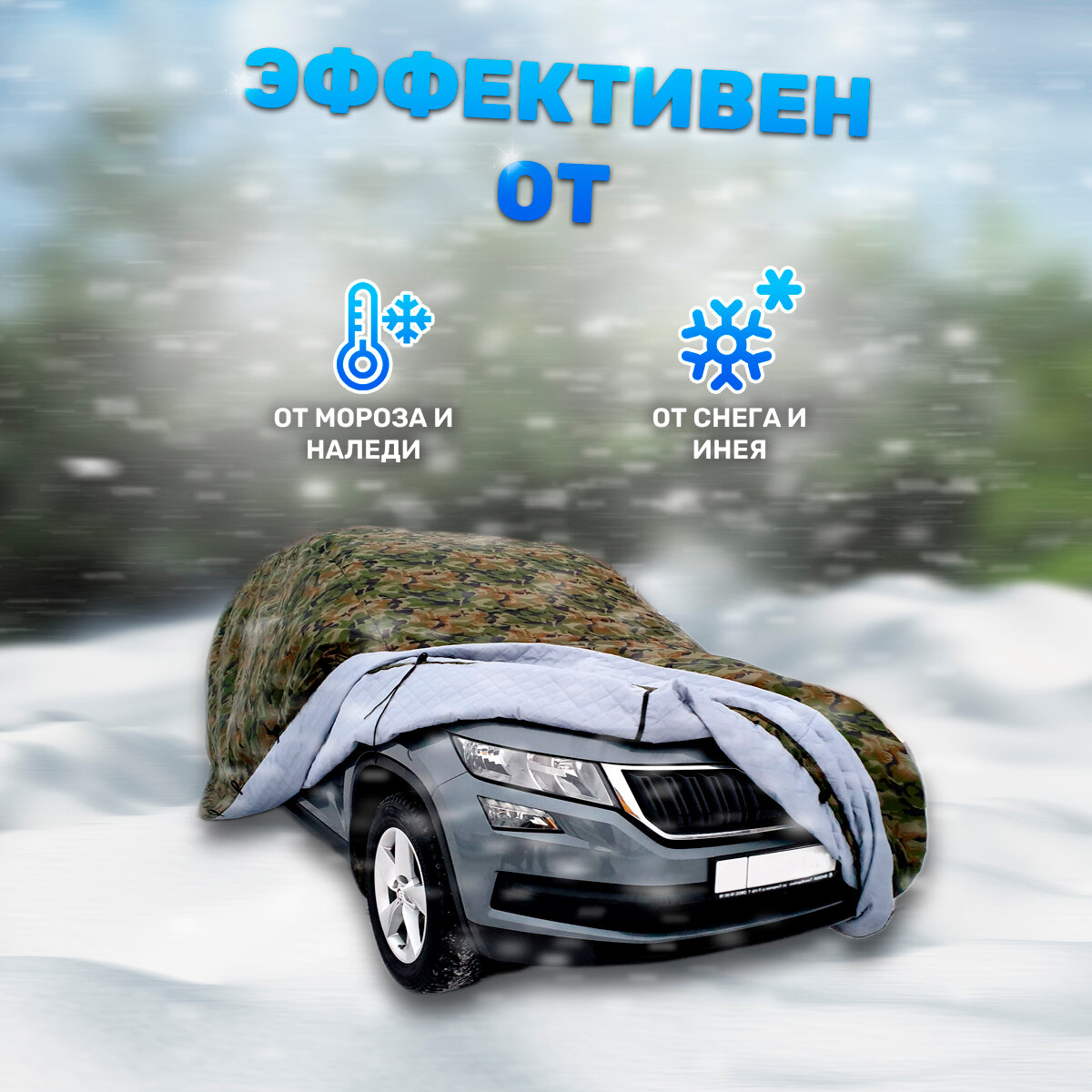 Зимний портативный гараж Защитные тенты РФ, утепленный чехол для автомобиля, нато, р-р 2+, 470х175х150 см