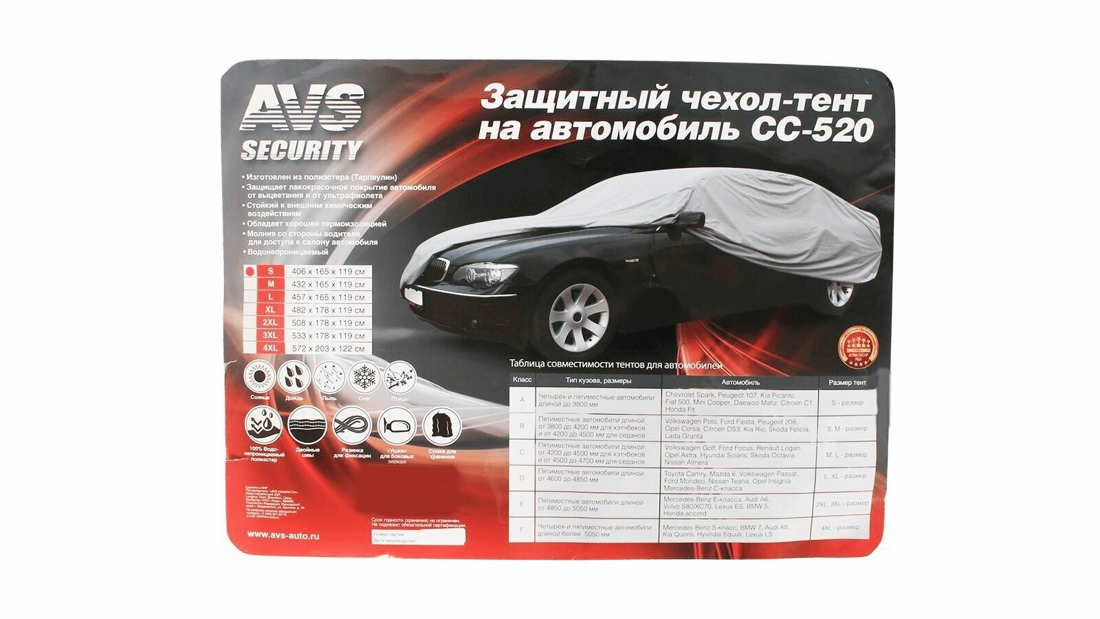 Купить Защитный чехол-тент AVS СС-520 XL (482х178х119 см) 43417