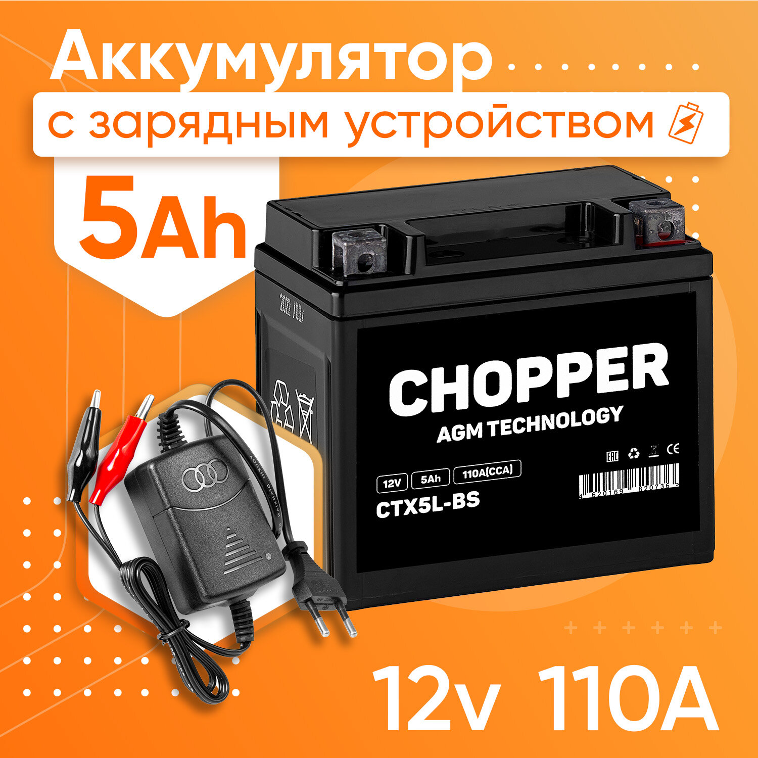 Мото Аккумулятор + Зарядное устройство CHOPPER AGM 12В 5 А/ч (СТ1205, YTX5L-BS) для мопеда, мотоцикла, скутера 12V 5 Ah интересное: