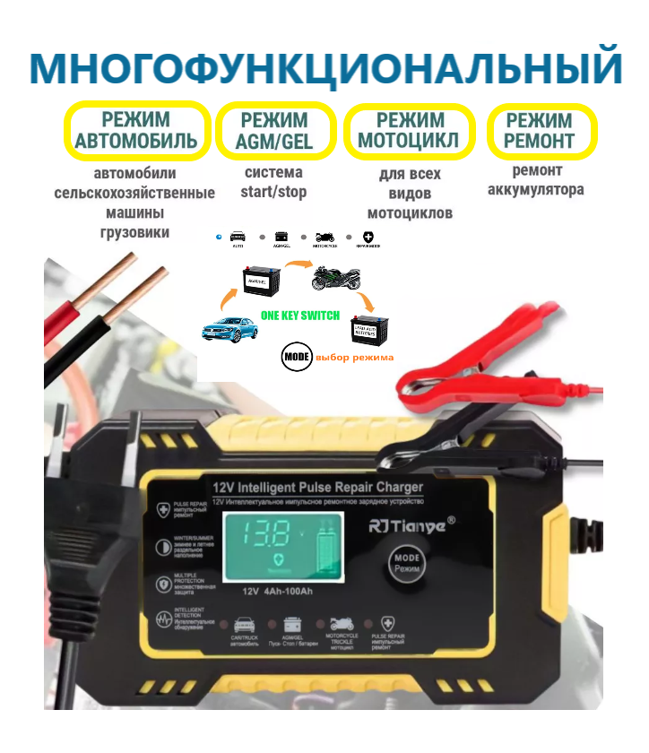 Автоматическое зарядное устройство 12В с функцией импульсного восстановления и ремонта / Yellow интересное: