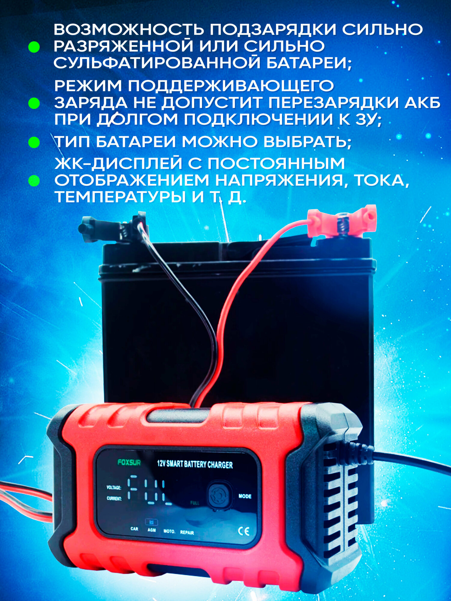Зарядное устройство для аккумулятора FOXSUR FBC-1206D (12V6A) orange интересное: