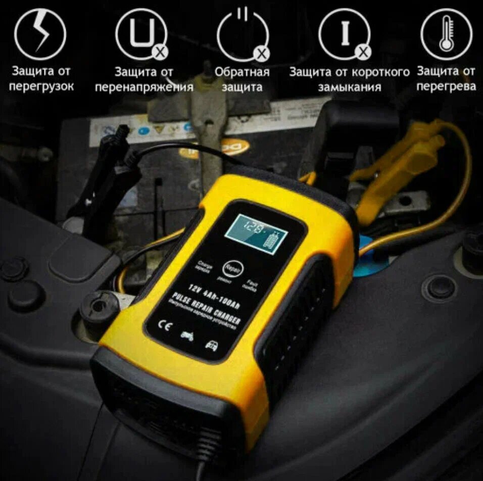 Зарядное устройство для автомобильного аккумулятора АКБ (ЖК дисплей, AMG/GEL, функция восстановления) / Желтый интересное: