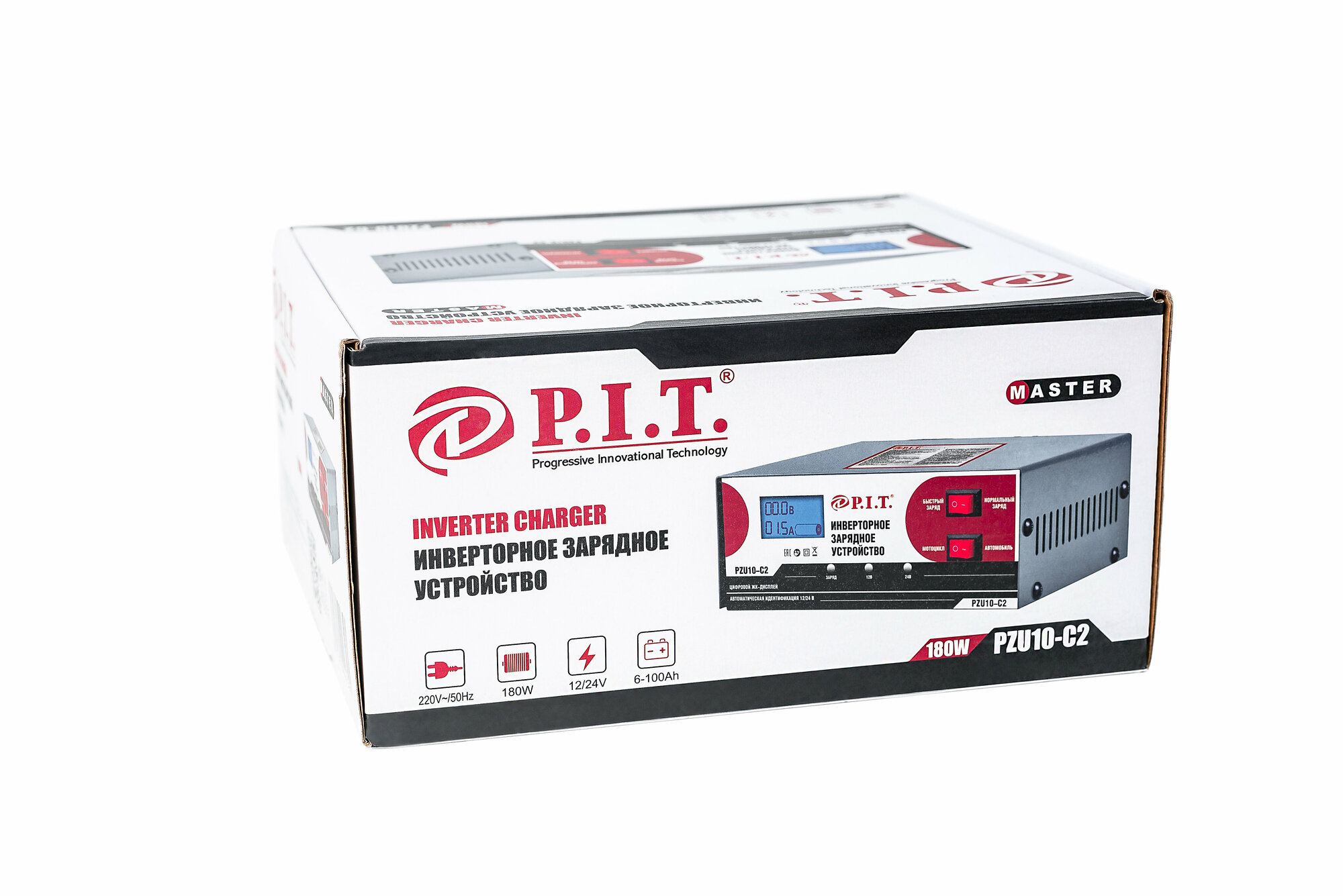 Зарядное инверторное устройство P.I.T. PZU10-C2 12/24 В, 6-100Ач, 180Вт, дисплей