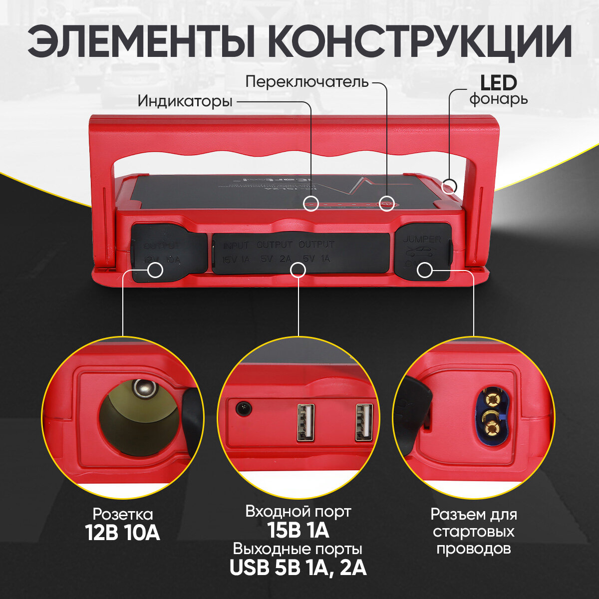 Пусковое устройство 12В, 24 000 мАч, 500/1000А iCartool IC-JSL24 интересное: