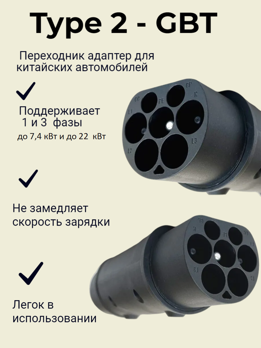 Переходник адаптер Type2-GBT 1ф 7кВт 3ф 22кВт 1шт интересное: