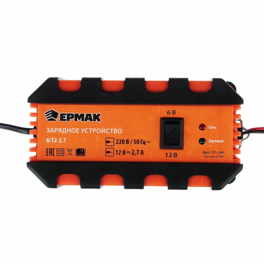 Зарядное устройство импульсное, автомат, 2.7 A, 6В/12В, пластик корпус ермак 771-195