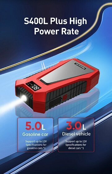 Пусковое портативное устройство, бустер Newsmy S400L Plus 11100mAh 400A интересное: