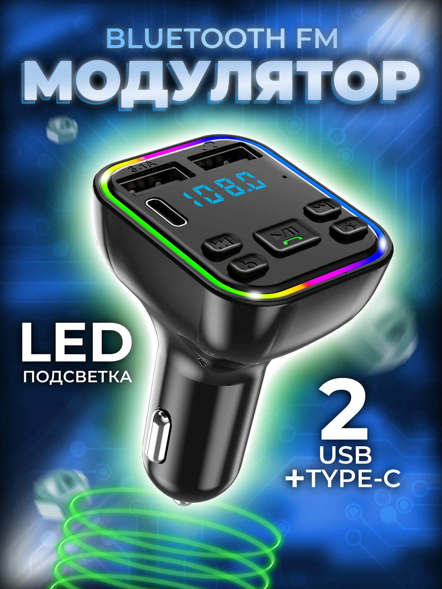 FM трансмиттер Bluetooth с RGB подсветкой / Модулятор автомобильный / Адаптер быстрой зарядки с 3 USB 3.1 A TDS-13