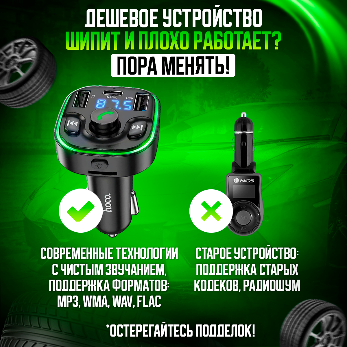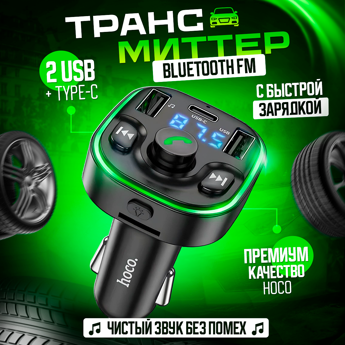 Автомобильный FM модулятор и фм трансмиттер bluetooth с блютуз и быстрой зарядкой Hoco