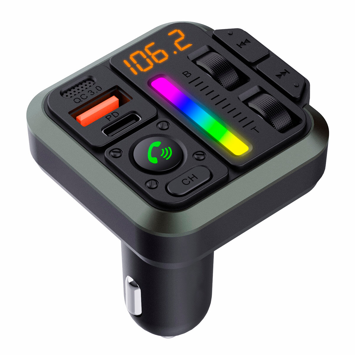 FM трансмиттер Bluetooth с RGB подсветкой / Модулятор автомобильный / Адаптер быстрой зарядки с 3 USB 3.1 A TDS-13