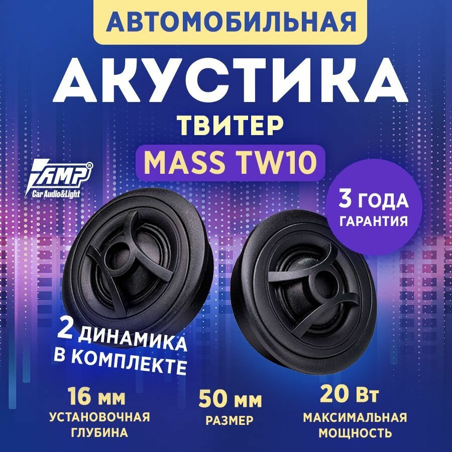 Акустика твитер AMP MASS TW10 / Твитеры автомобильные, 2 динамика интересное: