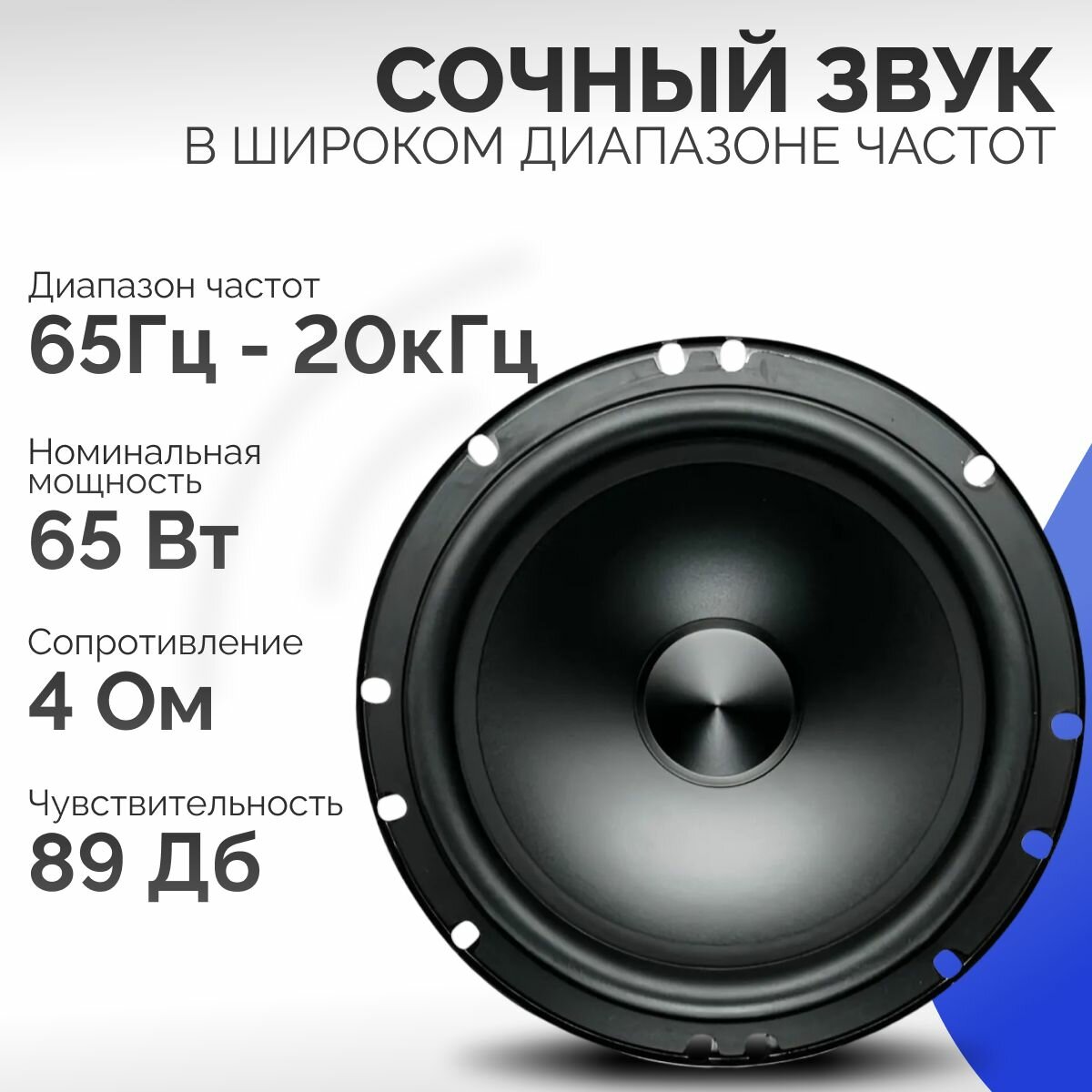 | Диапазон воспроизводимых частот | 65 - -- Гц |