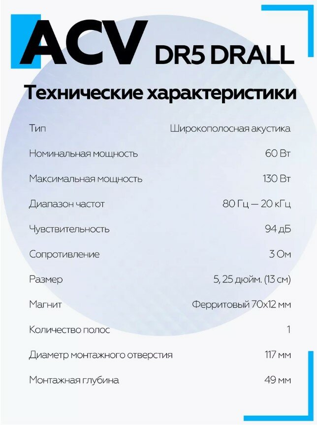 Автомобильная акустика ACV DR5 DRALL 13см широкополосная интересное: