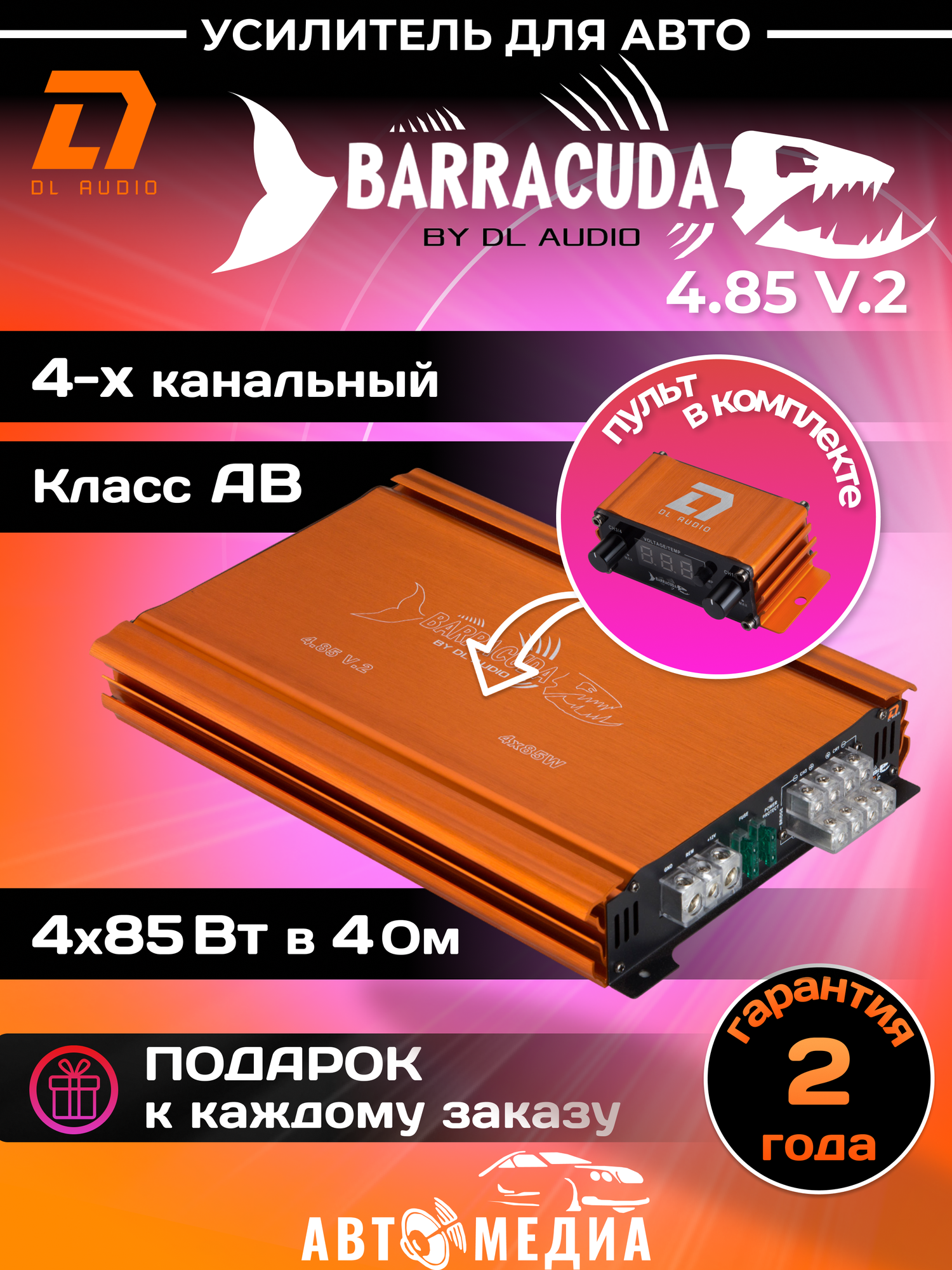 Ниже Вы можете прочитать отзывы на Автомобильный усилитель DL Audio Barracuda 4.85 V.2, ознакомится с подробными характеристиками, посмотреть интересные обзоры и фотографии на Автомобильный усилитель DL Audio Barracuda 4.85 V.2.