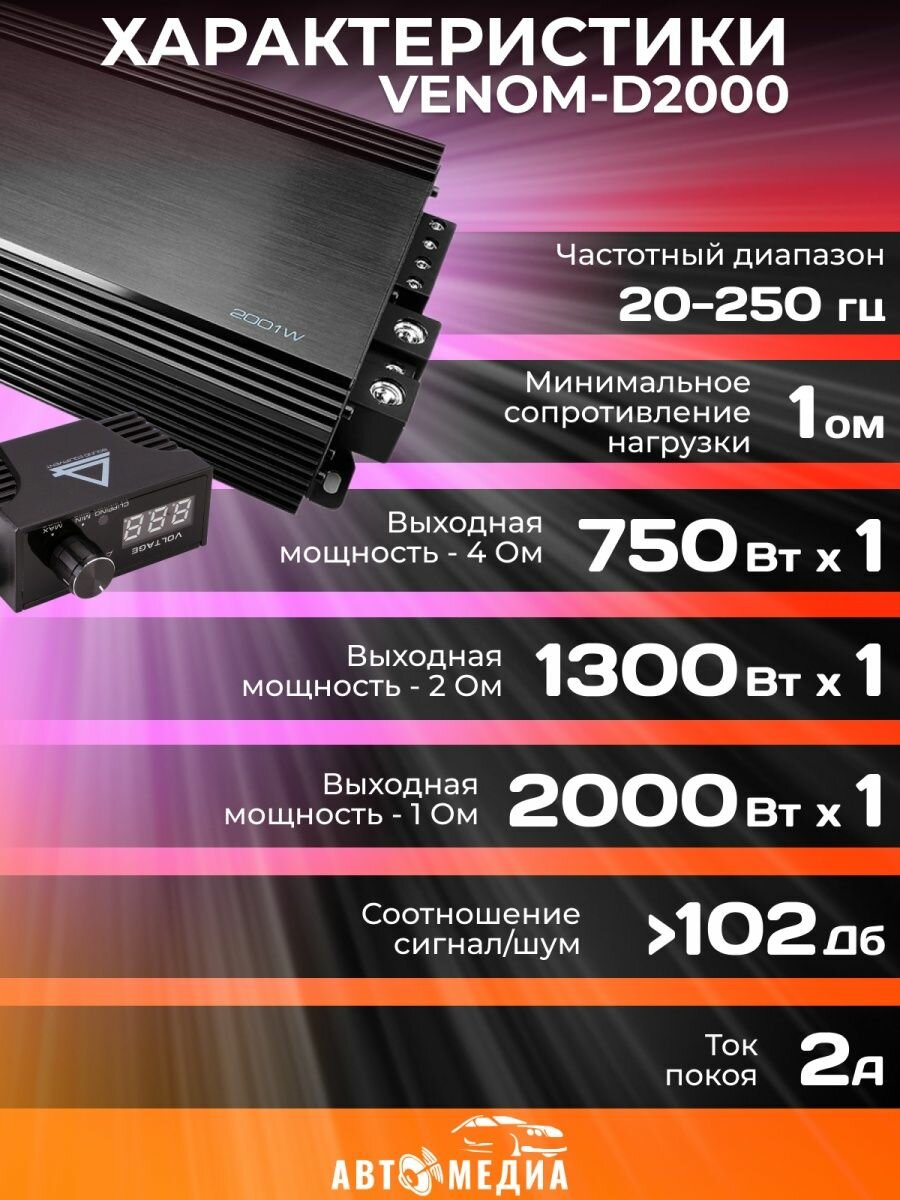 Автомобильный усилитель VENOM-D2000 интересное: