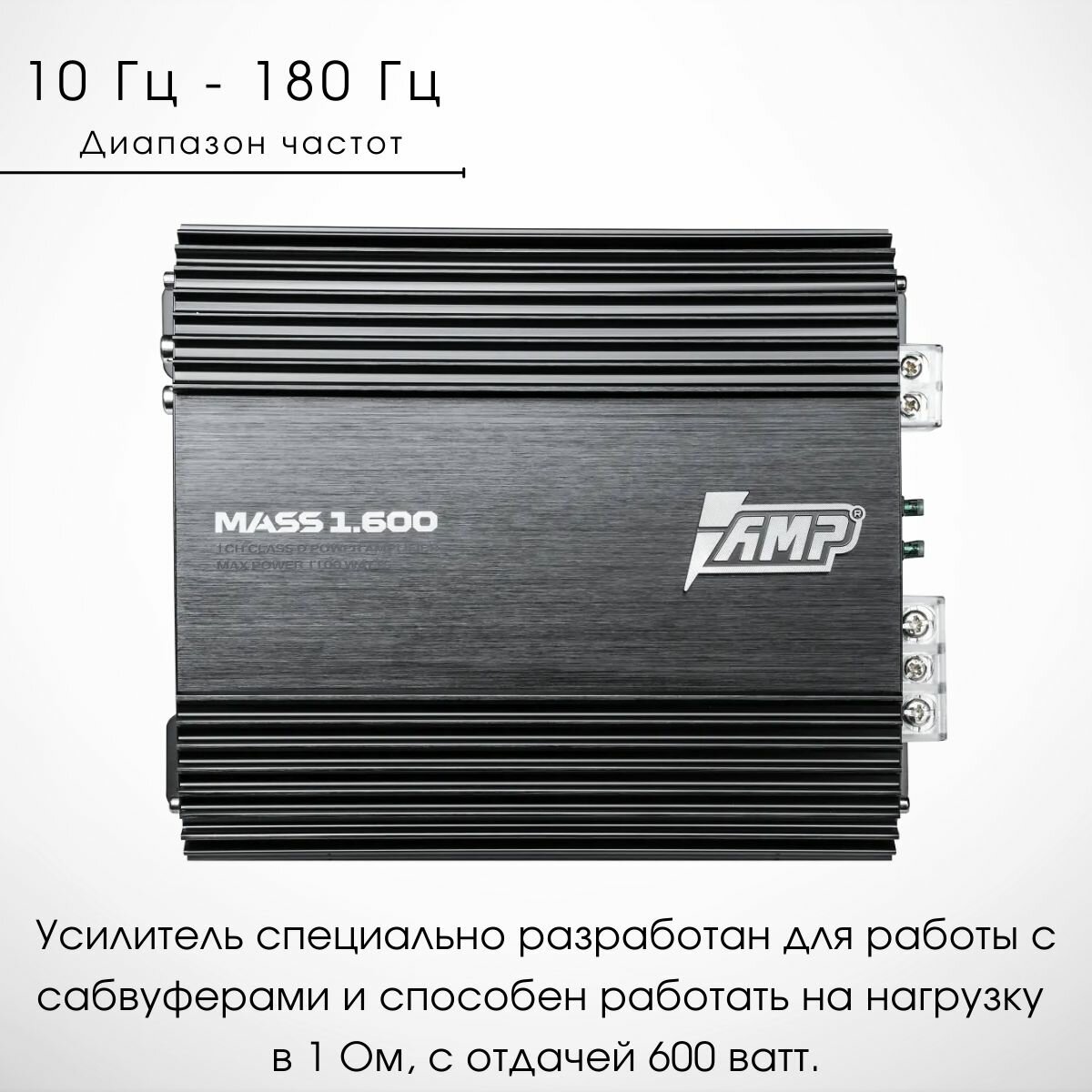 Усилитель автомобильный AMP MASS 1.600, 600 Вт х 1 (1 Ом), 1100 Вт, Класс: D интересное: