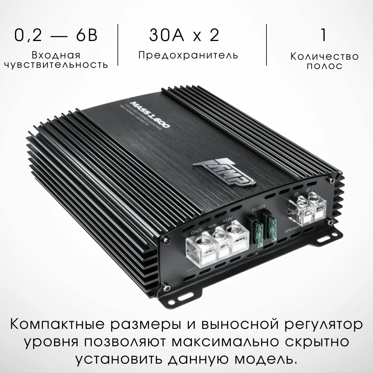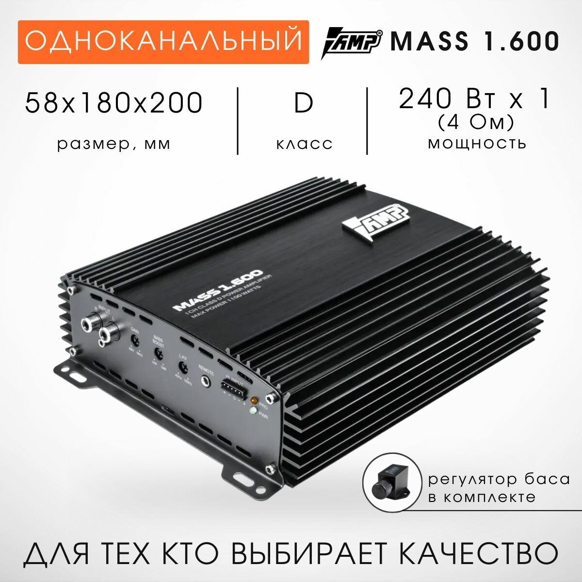 Купить Усилитель автомобильный AMP MASS 1.600, 600 Вт х 1 (1 Ом), 1100 Вт, Класс: D