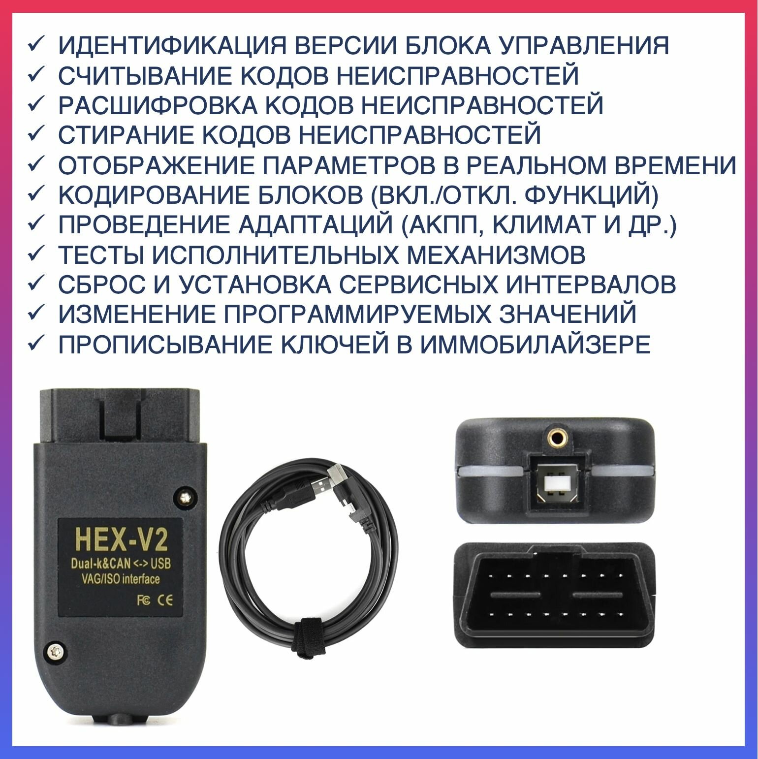 Диагностический сканер для VCDS и Вася, диагностика VAG, VAG-COM для Volkswagen/Skoda/Audi c 1998 по 2019 г.в., HEX V2 OBD2 оригинальный чип ATMEGA162