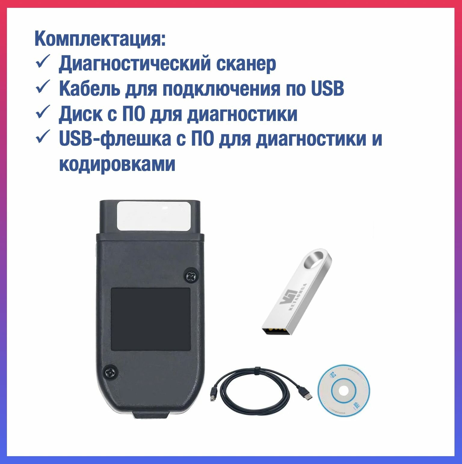 | Комплектация | - Диагностический сканер - Диск с ПО для диагностики - USB-флешка с ПО для диагностики и кодировками |
