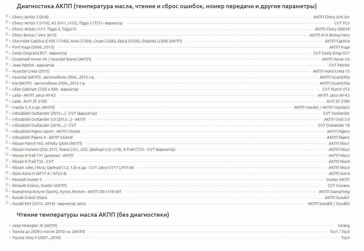 | Подключение | OBD-II |