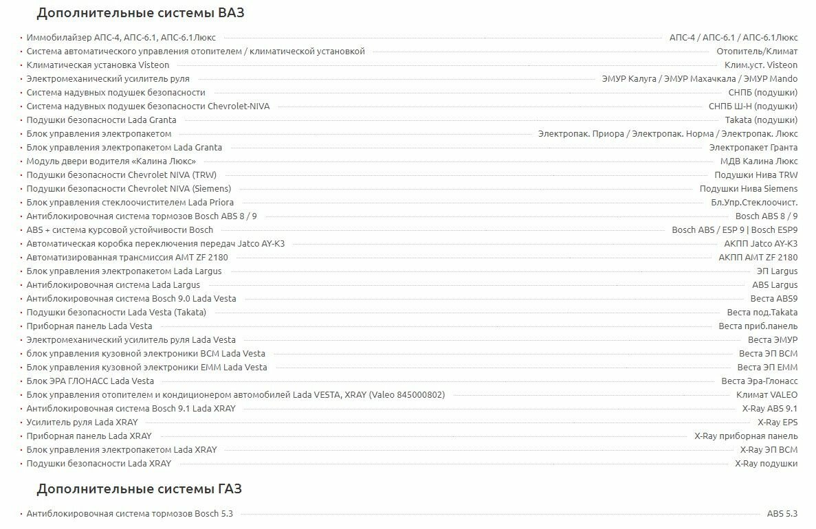 | Отображаемые предупреждения | сброс кодов ошибок / чтение кодов ошибок |