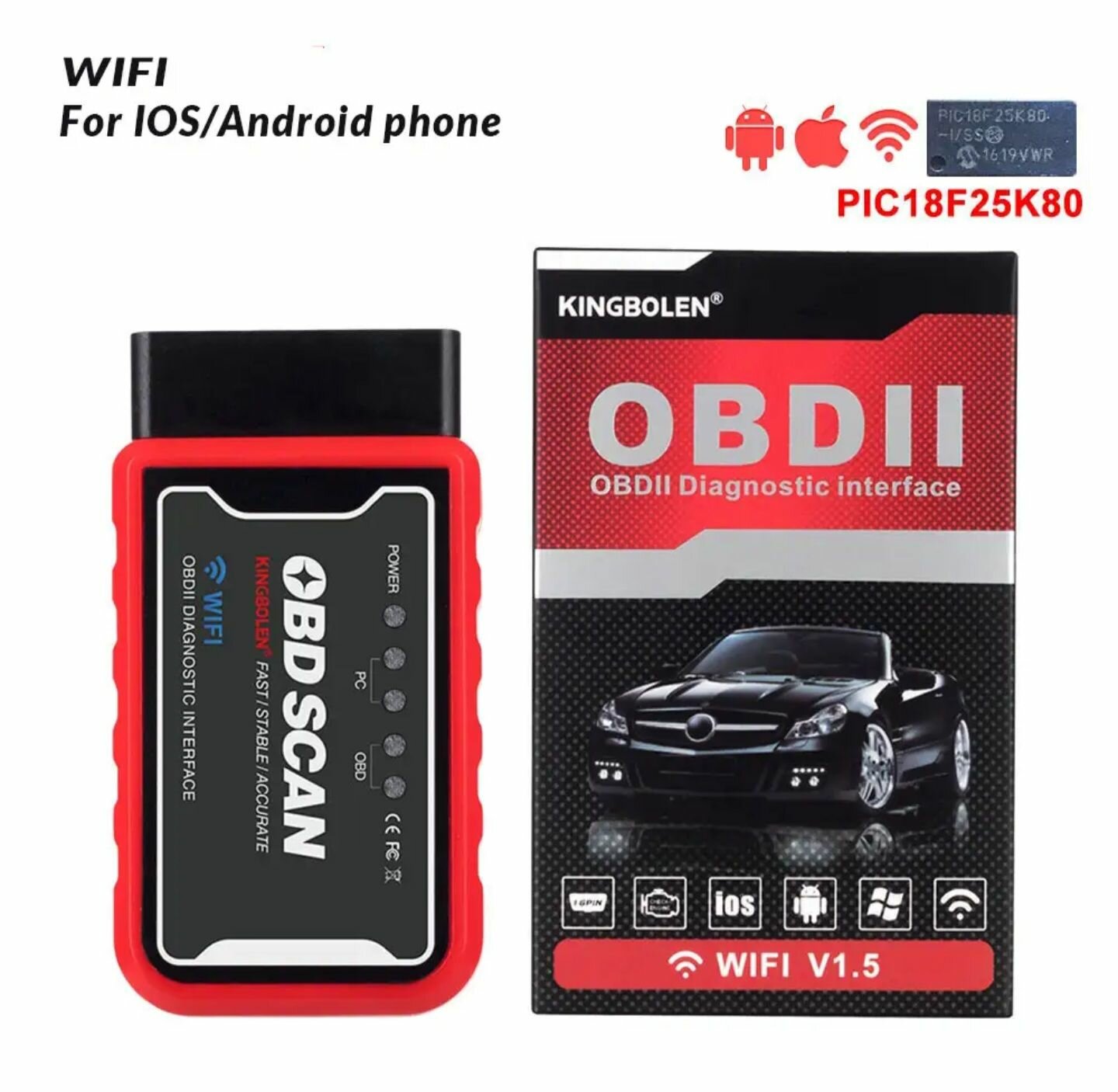 Купить Диагностический сканер KINGBOLEN, ELM327 OBD2 Wi-Fi v1.5 чип PIC18F25K80, Для IOS и Android