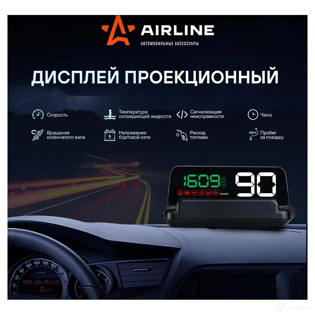 Дисплей проекционный HUD, спидометр с встроенным прямоугольным экраном AIRLINE интересное: