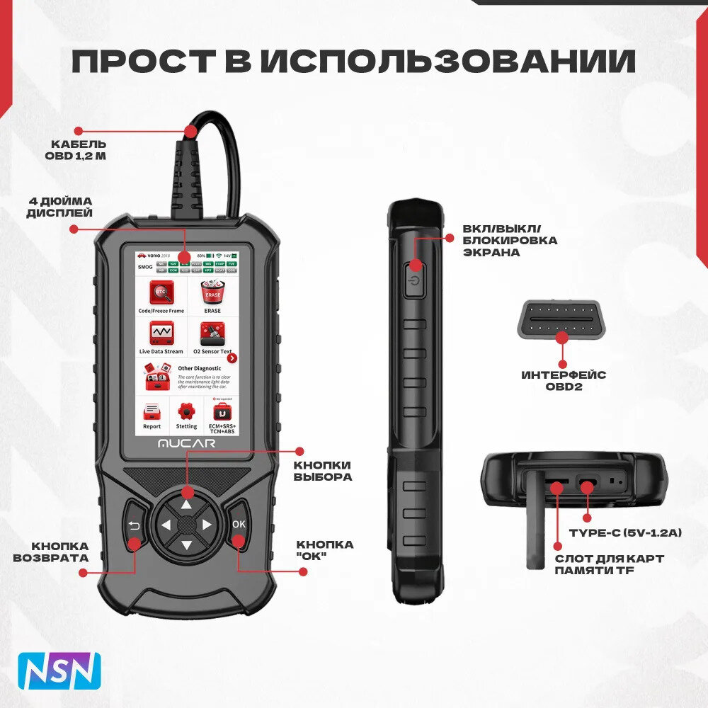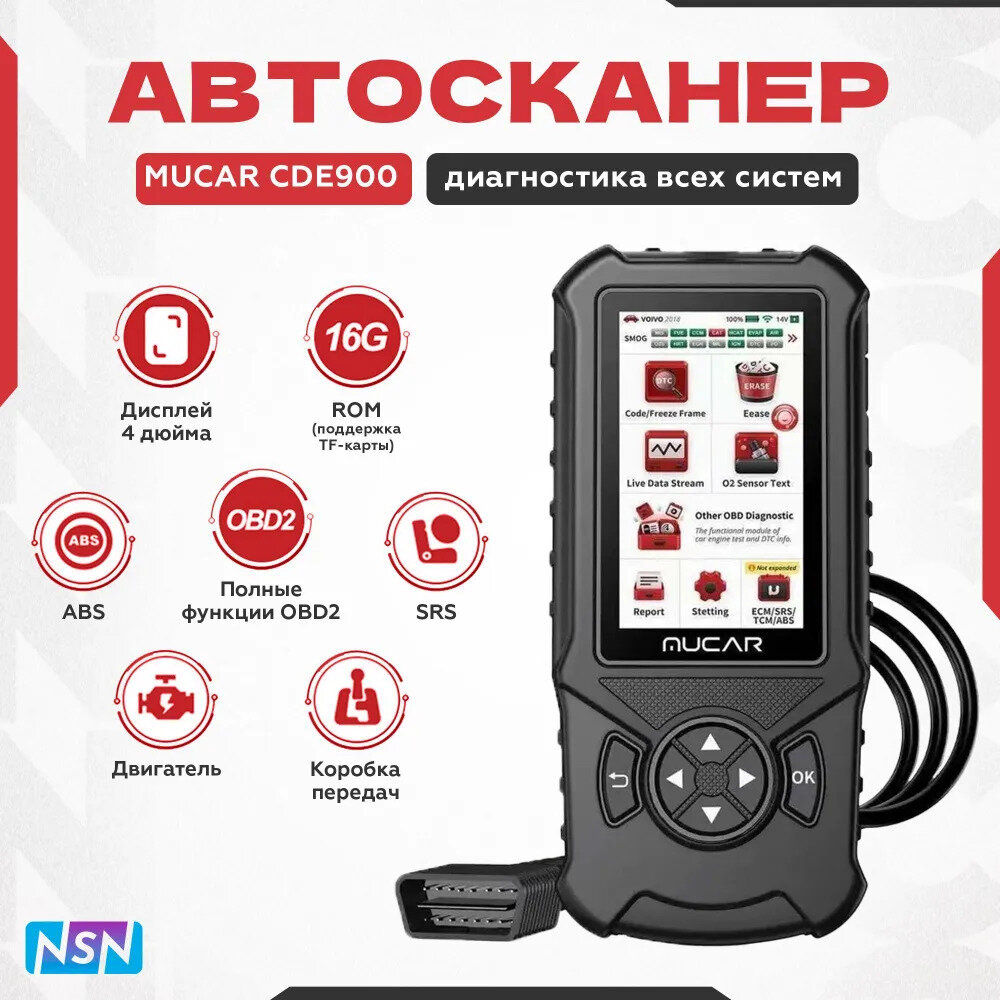 MUCAR CDE900 OBD2 Диагностический Автосканер , Большой HD-дисплей.NSN интересное: