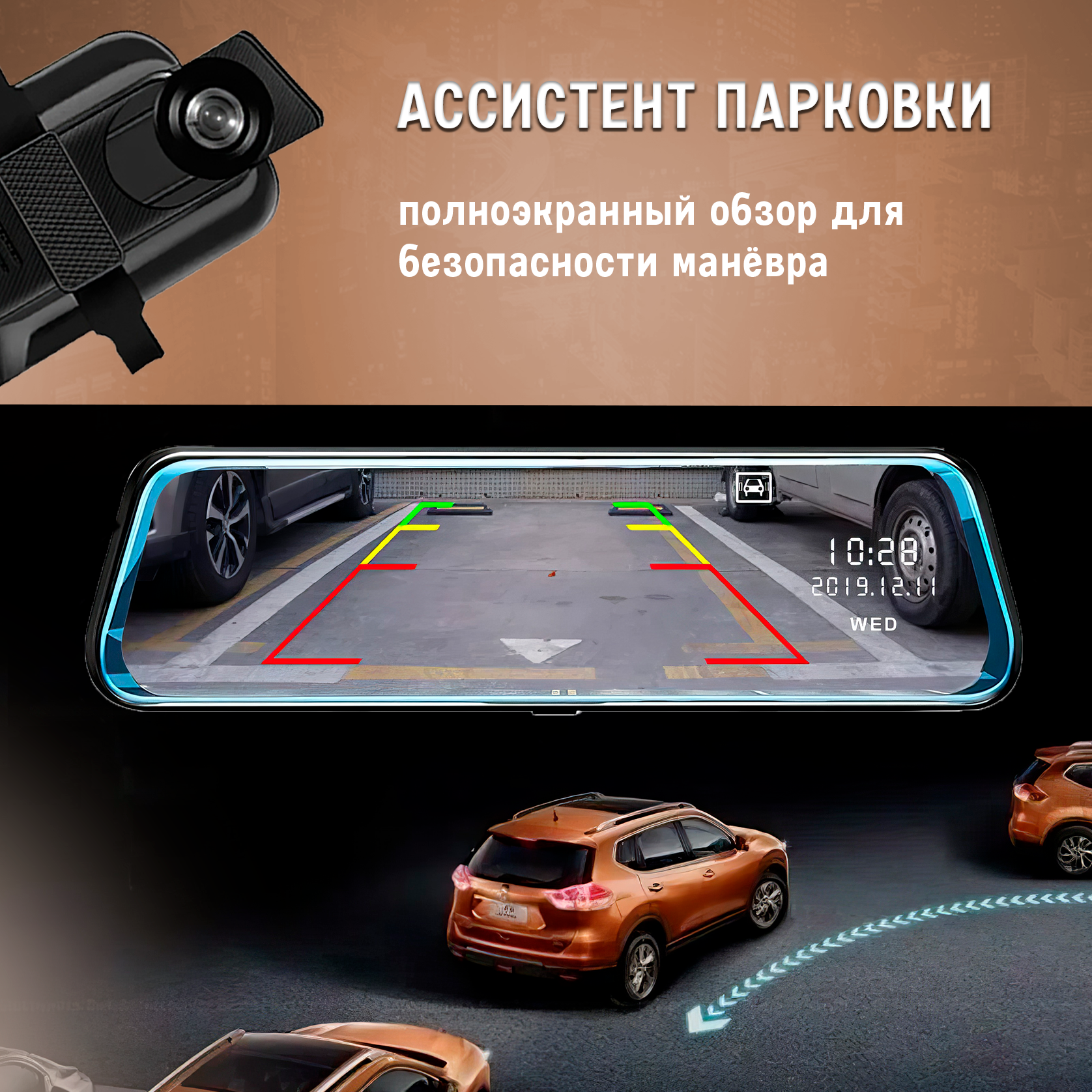 Автомобильный видеорегистратор - зеркало с выносной камерой заднего вида интересное: