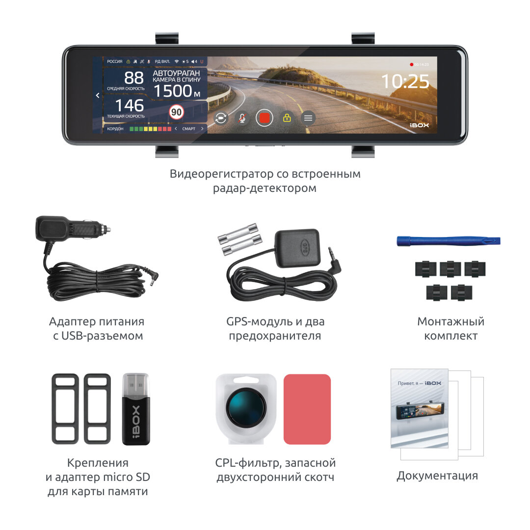 Видеорегистратор с радар-детектором iBOX Range 2 + Внутрисалонная камера FHD4