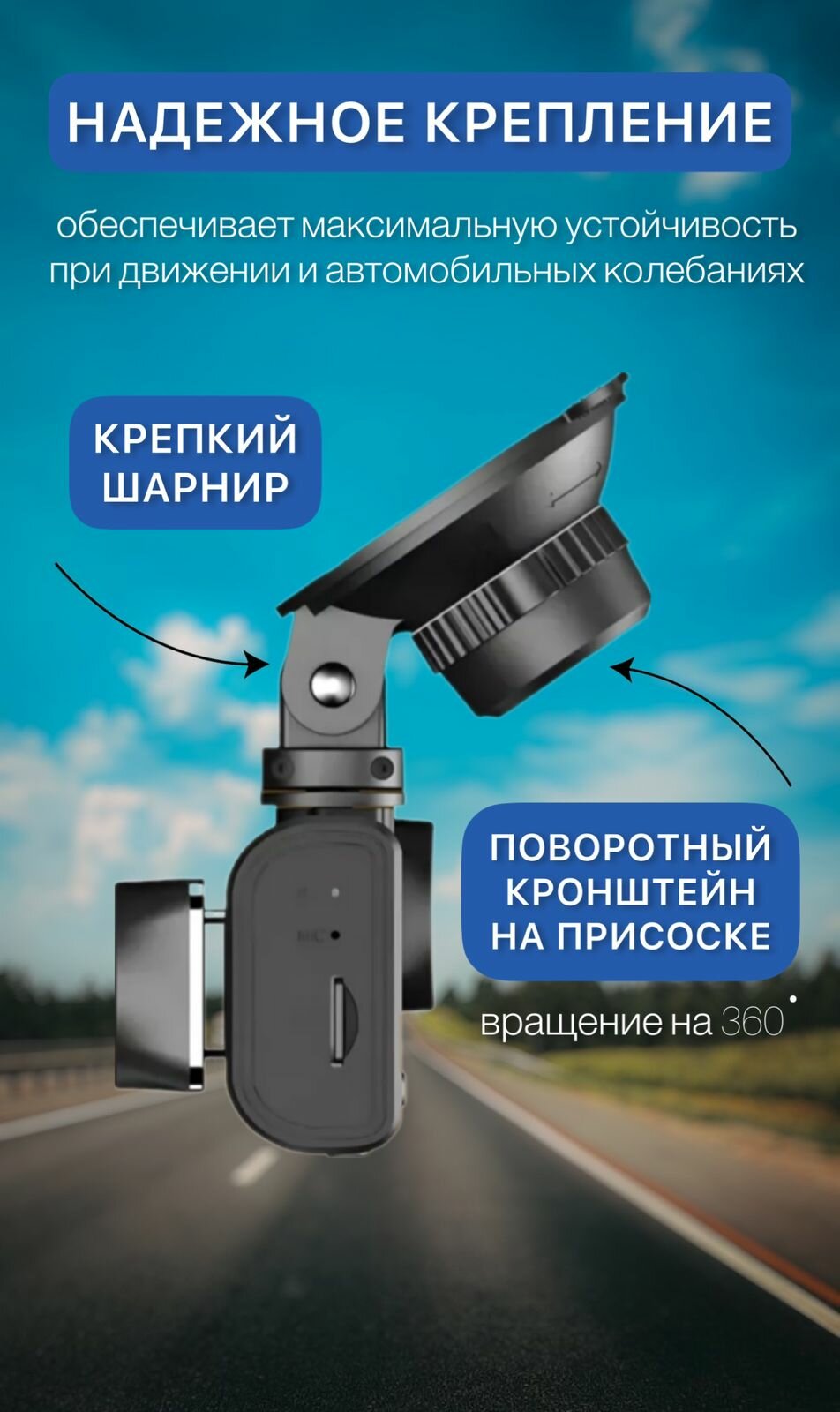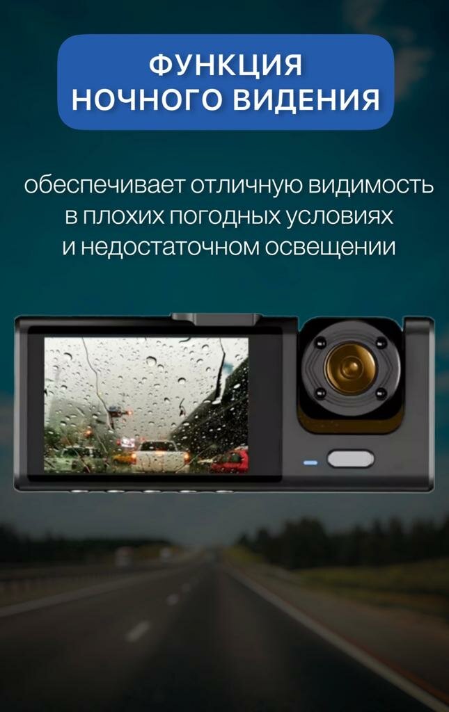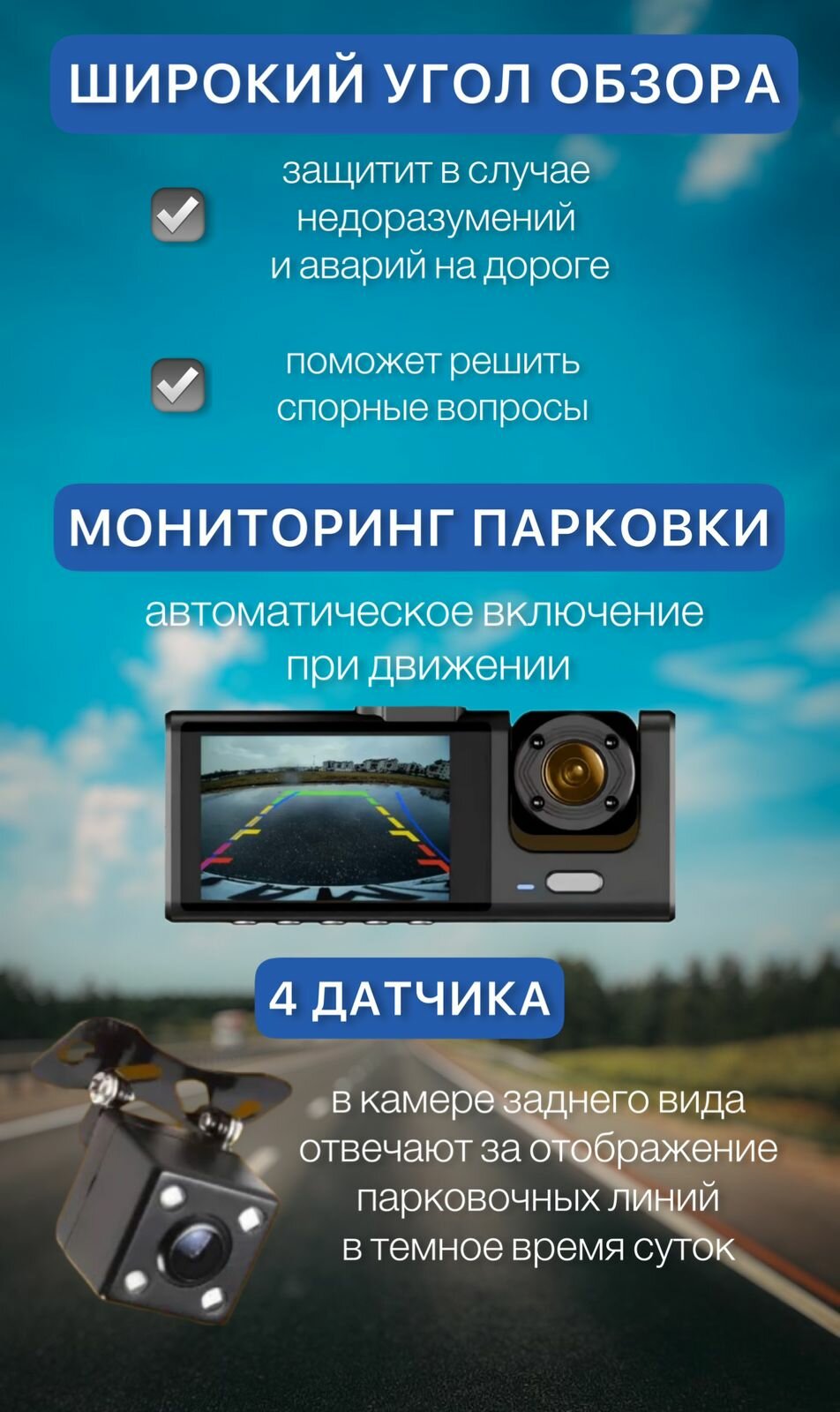 Видеорегистратор широкоугольный с 3-мя камерами( фронтальная, внутренняя, задняя). G-сенсор, FULL HD. интересное: