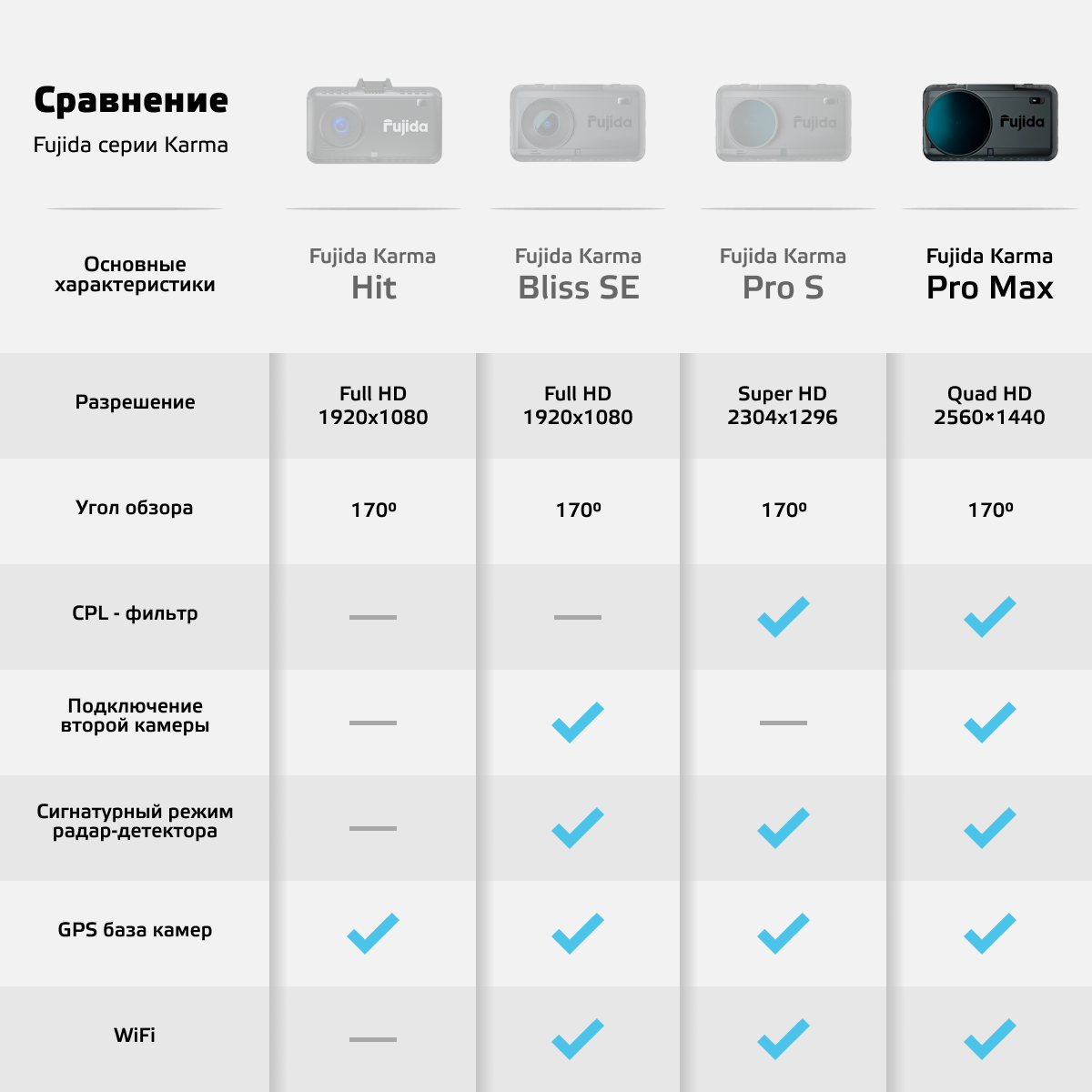 СохранитьВидеорегистратор Fujida Karma Pro Max Duo WiFi Quad HD с CPL-антибликовым фильтром, LNA, сигнатурным радар-детектором, GPS-информатором и WiFi-модулем интересное: