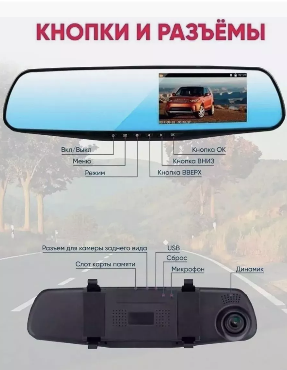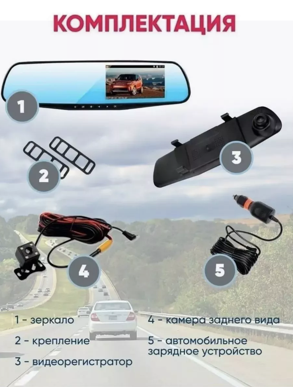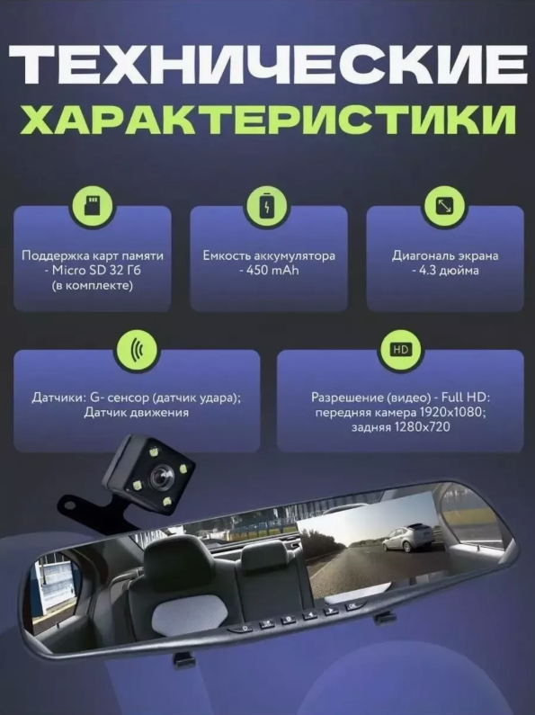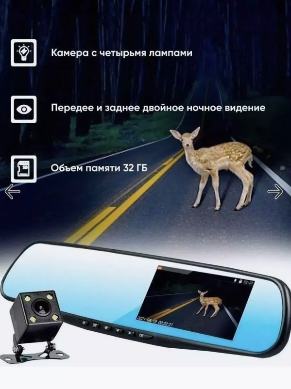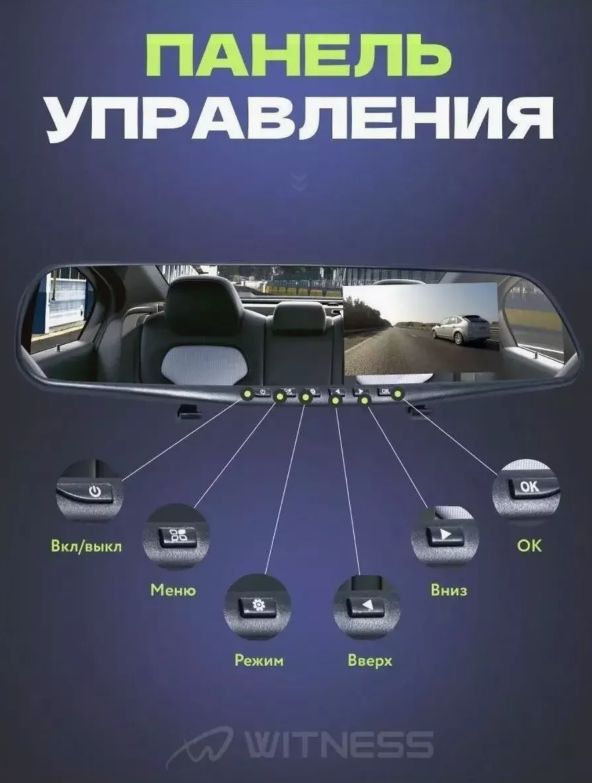 | Дополнительная информация | Видеорегистратор универсальный, подойдет на любое штатное зеркало. |
