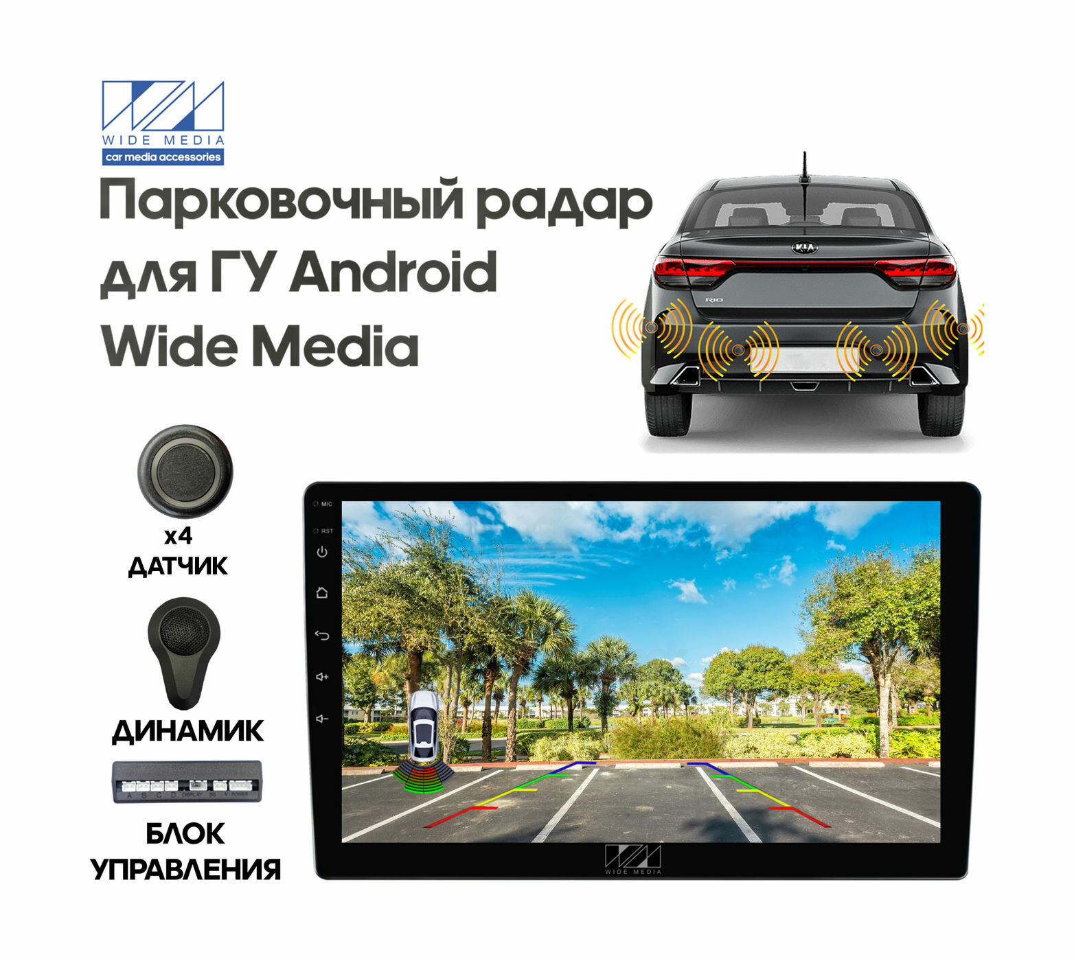 Парковочный радар Wide Media APS-114BL (в задний бамп., для ГУ Android, 4 дат. врез., черн.)
