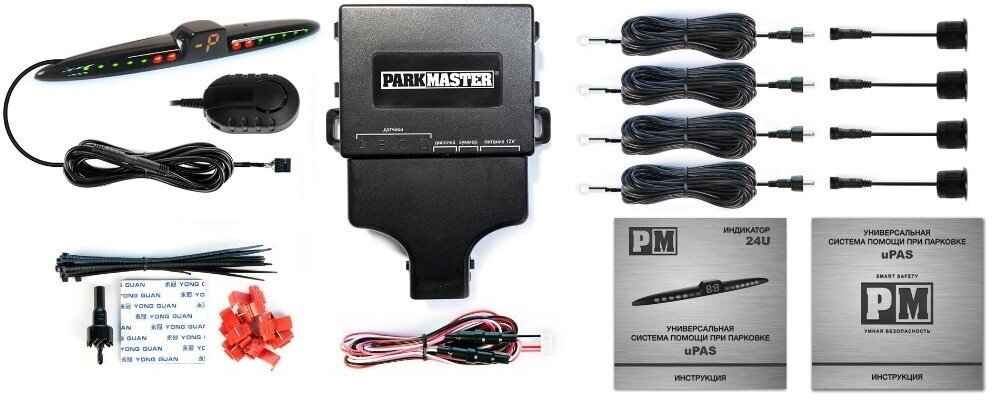 Универсальная система парковки Parkmaster 24U-4-A-Black (4 черных датчика для переднего или заднего бампера, голосовой) Новинка 2023 интересное:
