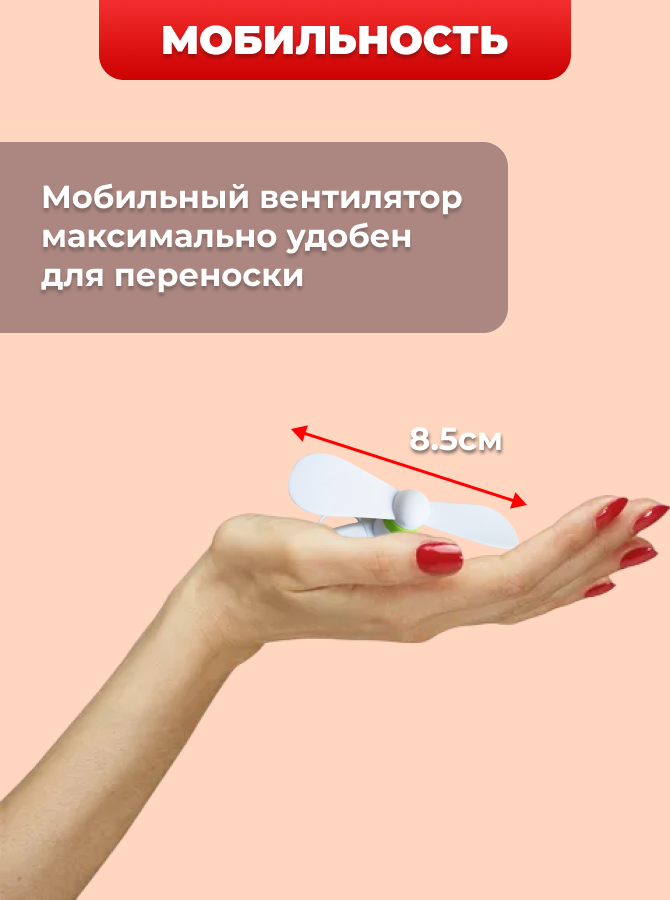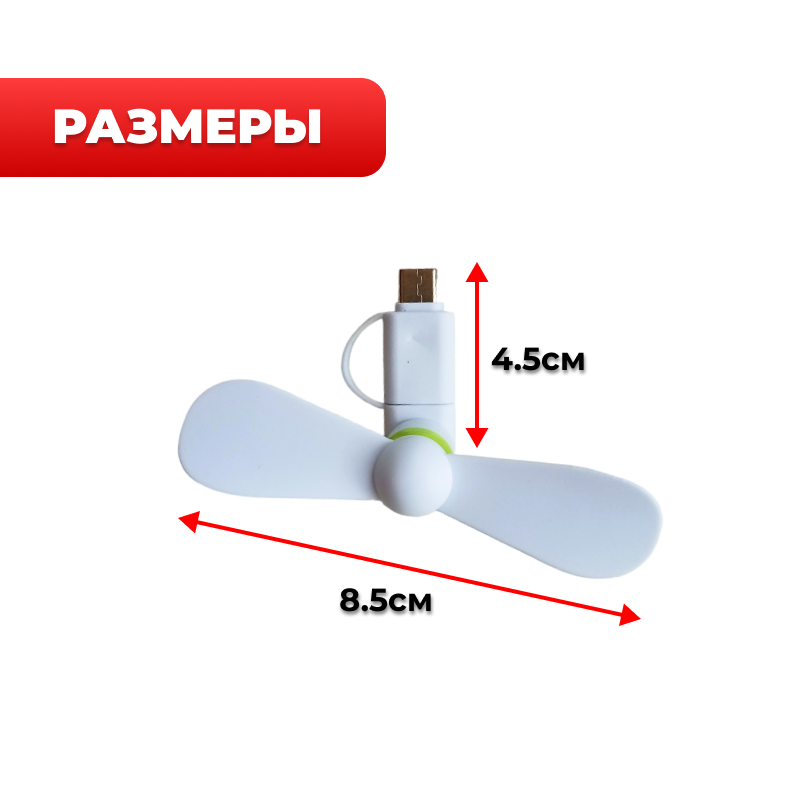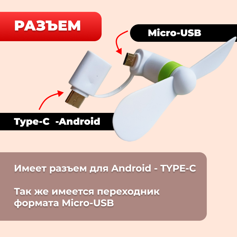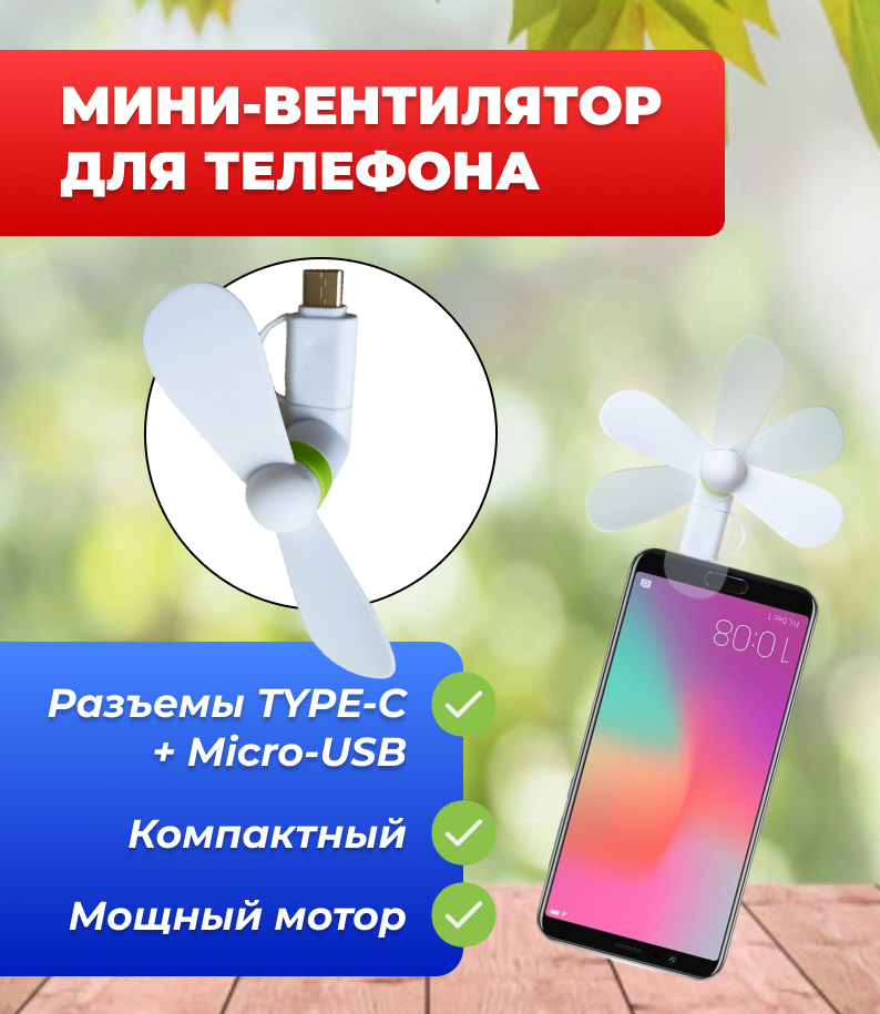 Портативный вентилятор для телефона с разъемом Type-C + MicroUSB, белый интересное: