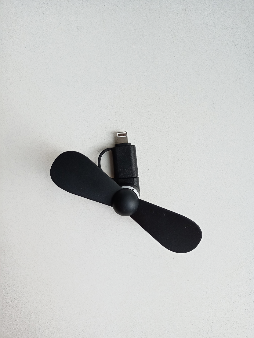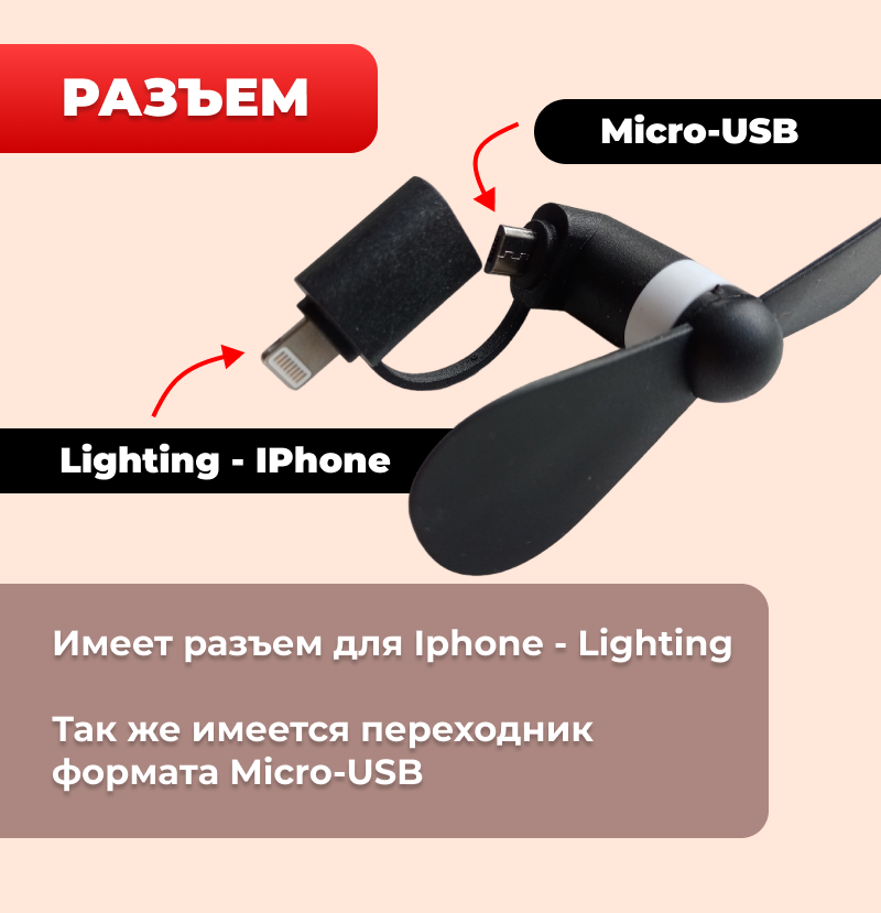 Портативный вентилятор для телефона с разъемом Lighting + MicroUSB, черный интересное: