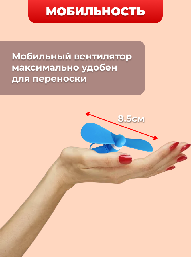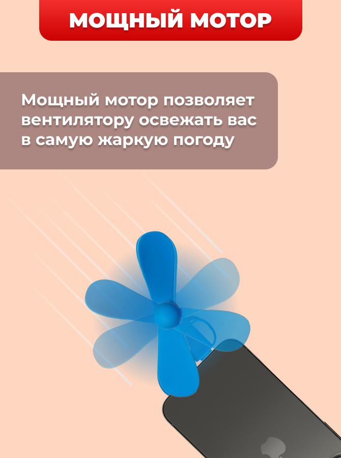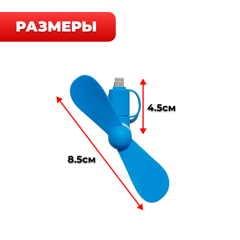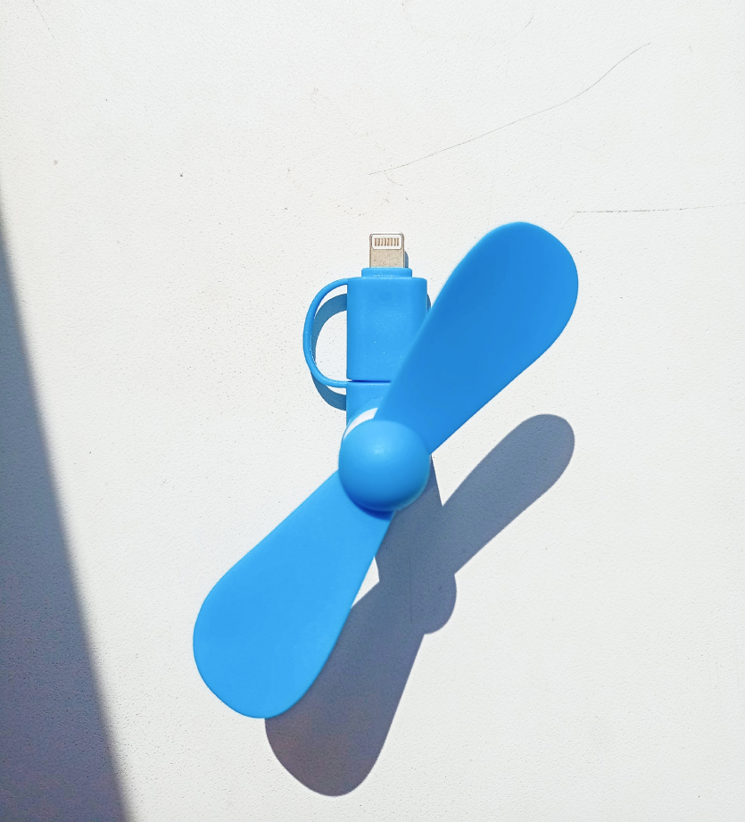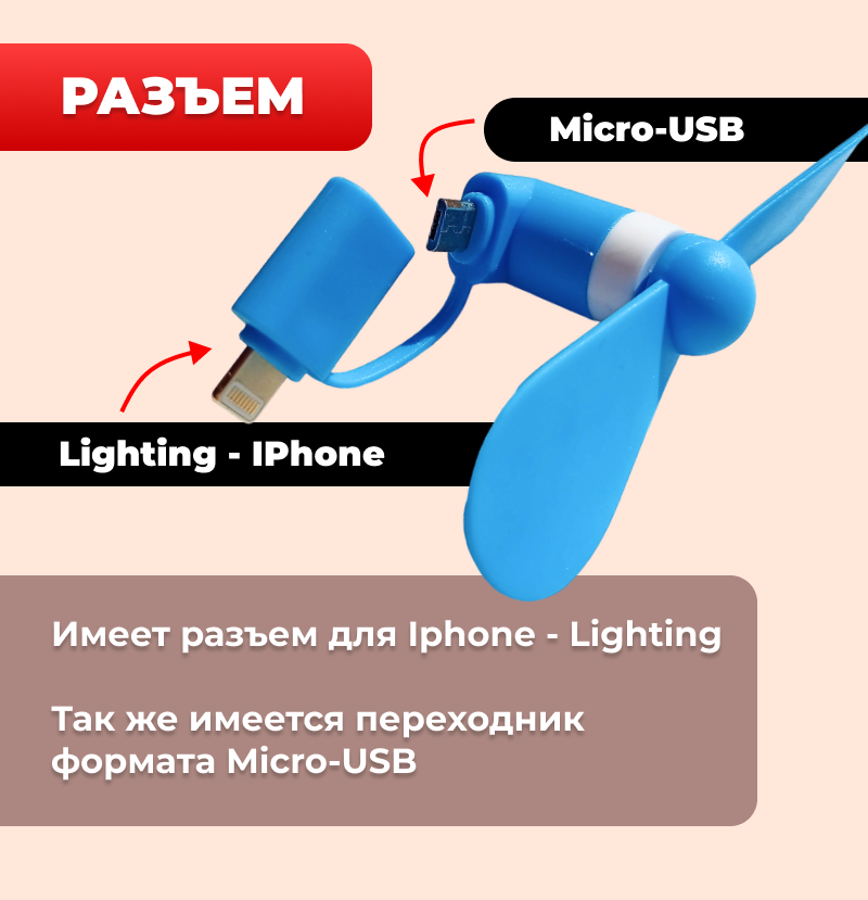 Портативный вентилятор для телефона с разъемом Lighting + MicroUSB, синий интересное: