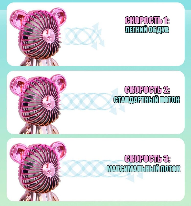 Портативный вентилятор настольный Мишка BearBrick с 3 скоростями сине-бирюзовый интересное: